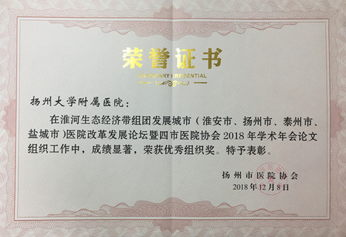 近日,淮河生态经济带组团发展城市(淮安市、扬州市、泰州市、盐城市)医院改革发展论坛暨四市医院协会2018年学术年会优秀论文获奖名单出炉,我院共有12篇论文获奖。其中,一、二等奖各2篇,三等奖8篇。同时,我院获“优秀组织奖”。