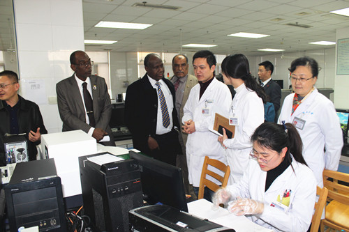12月17日,苏丹喀士穆大学现代医学技术培训班37名学员来到我院,进行为期一周的临床实践学习。苏丹高教科研部培训与能力建设司负责人默罕穆德?达哈布,苏丹喀士穆大学学术事务部负责人萨米尔教授,中国问题专家、扬州大学优秀校友哈桑博士,扬州大学海外教育学院党支部书记蒋鸿青、副院长王小治,我院副院长殷旭东,海外教育学院招生办及我院教育处等科室负责人出席开班仪式。