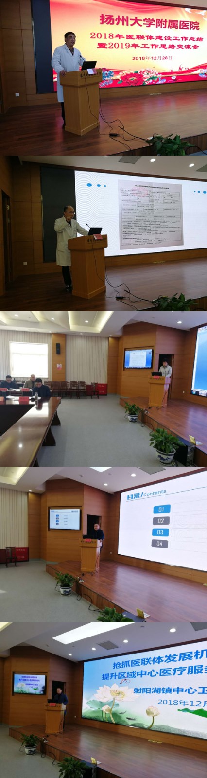 12月28日上午,扬州大学附属医院2018年度医联体建设工作总结交流会在我院东区多功能会议室召开,我院院长刘歆农,院党委书记王炜,副院长单清,广陵、邗江、江都、宝应等4个区(县)卫生主管部门、13医联体成员单位负责人,以及我院相关职能科室负责人近50人参加会议。会议由副院长单清主持。