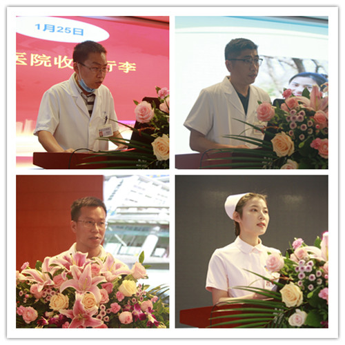 重症医学科主治医师郑庆斌作为我院第一批援湖北医疗队队员代表发言。郑庆斌以“我来打头阵”为题,和大家分享了他和5位护理人员作为医院第一批支援湖北医疗队,在前线发生的感人肺腑的战“疫”故事,展现了逆行者的风采。他说,我和5位战友在武汉市江夏区第一人民医院一起战斗了53天,这53天对于我们每一个人来说,是一段难忘、深刻的记忆。回忆当初出征时的情景,郑庆斌说,队员们有的还是会向父母撒娇的小姑娘、有的为了支援前线推迟了婚期、还有的孩子才刚刚学会走路。面对他们、面对这场战“疫”,我时刻提醒自己不但要保护好自己,还要保护好队里的成员,要用严谨的态度、专业的知识,打赢这场战斗!郑庆斌和大家分享了初到武汉时,面对防护物资的缺乏、医疗环境的紧张、患者数量的庞大,大家如何克服困难,与时间赛跑、与病魔较量,争分夺秒抢救患者的经历。