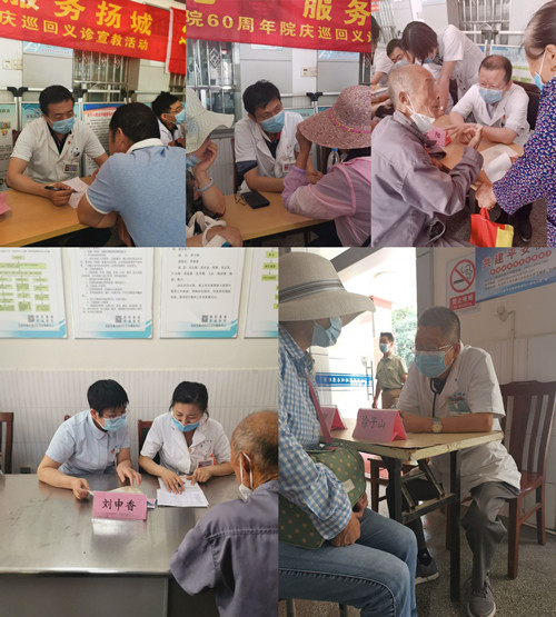 为了迎接建院60周年,传承医院历史、总结医院发展、展望医院未来,连日来医院开展了形式多样、内容丰富的院庆活动。为更好地服务百姓,医院将陆续开展“传承初心,服务扬城”系列巡回义诊宣教活动。6月6日,内科二、三支部以及妇儿二支部分别在仪征市真州社区卫生服务中心、曲江街道社区服务中心开展首场义诊活动。