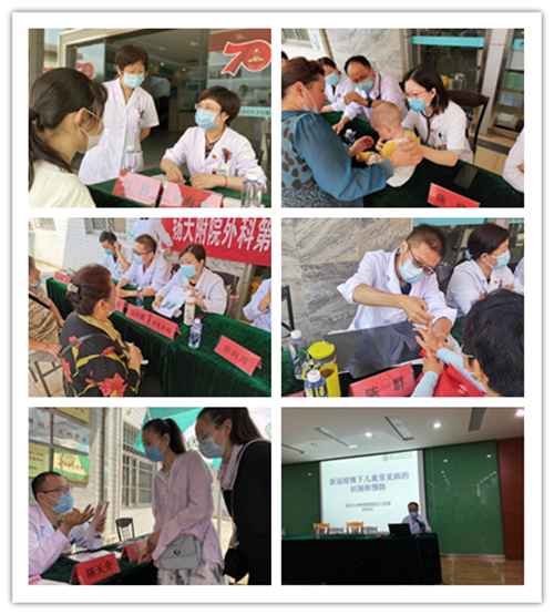 据了解,此次义诊活动旨在普及健康生活理念,倡导健康生活方式,大力提高广大妇女儿童健康素养和幸福指数,同时指导成人慢病管理以及结合新冠肺炎防控知识进行宣教。活动现场,我院儿科、妇产科、泌尿外科、甲乳外科、骨科、神经内科的医护专家为社区居民一一看诊,悉心为他们解答疑问,对常见病、多发病的预防和常用药服用等方面进行指导。儿科副主任医师张利兵作“新冠疫情下儿童常见病的识别和预防”;产科护士汪婕、王思思为大家讲解并演示了母乳喂养及2019版《医务人员手卫生规范》。