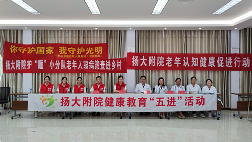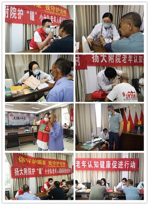 6月18日上午,我院健康教育“五进”活动走进邗江区平山乡优抚驿站,开展“老年认知健康促进行动”,为退伍老兵和槐子村的老年人进行眼病筛查、认知功能障碍危险因素筛查、义诊咨询及健康宣教。