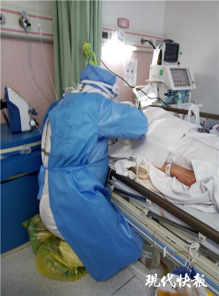 除了常规治疗,陈庆丰还承担着病区所有患者的侵入性操作,其中气管插管操作风险极大。陈庆丰告诉现代快报记者,尽管风险比较大,但是该做的还是要迎难而上。由于 28 病区是由普通病房改造的,床位低矮,每次操作陈庆丰都要跪在地上进行," 这样操作更顺手一些。"