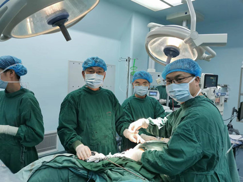8月3日下午,在2022年江苏省胃肠外科年会“手术直播周”活动中,我院胃肠外科主任医师王向军团队首次成功线上直播演示一例“腹腔镜下乙状结肠癌手术”,线上观看人数达21000余人。据悉,此次直播手术为我院外科首次亮相省级学术会议。据了解,该手术选中一例乙状结肠癌患者,患者术前诊断为乙状结肠癌伴梗阻、出血,同时术前CT评估显示,患者肿瘤较大,并伴有周围浸润。经MDT讨论一致认为,患者符合手术指征,但手术难度较大。直播手术过程中,王向军团队进腹后探查发现,患者肿瘤巨大,肠壁水肿,肿瘤侵犯小肠并与周围粘连,手术难度比预估更大。面对2万多名观众,在胃肠外科副主任医师殷军锋、主治医师凌杰的密切配合下,王向军冷静沉着并出色地完成了此次手术,用时1小时余,手术步骤清晰,淋巴结清扫范围精准,出血量少。据悉,2022年江苏省胃肠外科年会于8月1日至6日召开,会议中重要组成部分“手术直播周”共邀请了24家省内一流医院参加。由王向军团队操刀该手术,并通过线上直播,充分展示我院胃肠外科微创手术的实力,同时也加深我院与省内兄弟医院之间的技术交流,从而进一步推动我院胃肠外科专业的纵深发展。