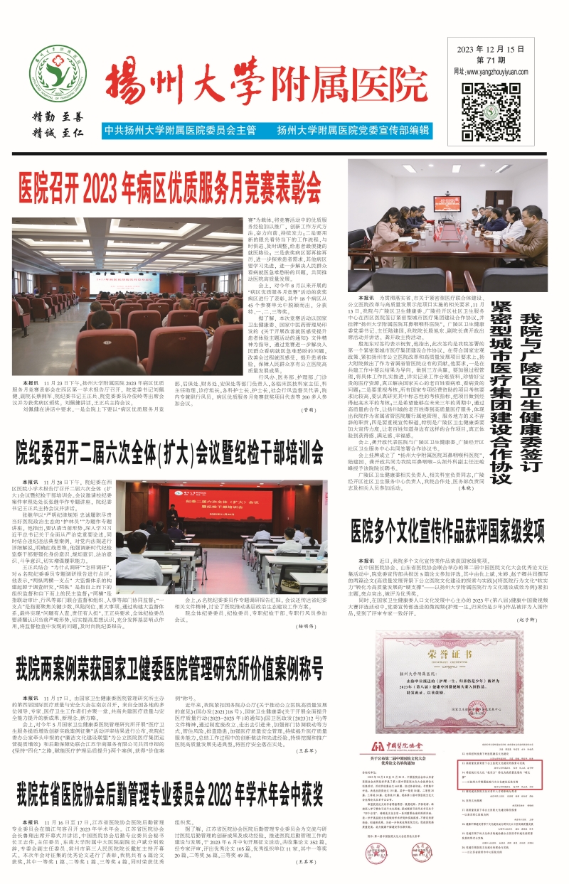 《扬州大学附属医院》第71期(2023年12月15日第1版)