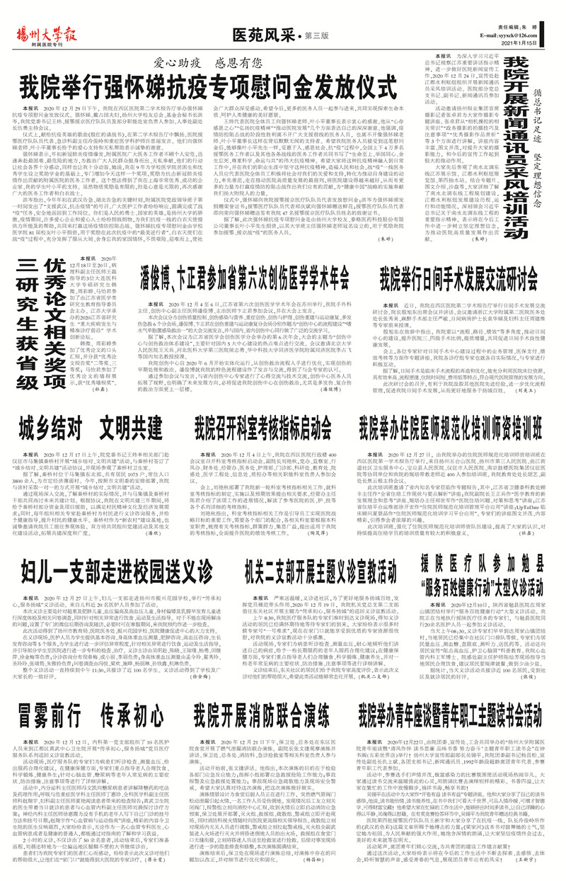《扬州大学报•附属医院专刊》第36期(总第668期)(2020年12月15日第3版)