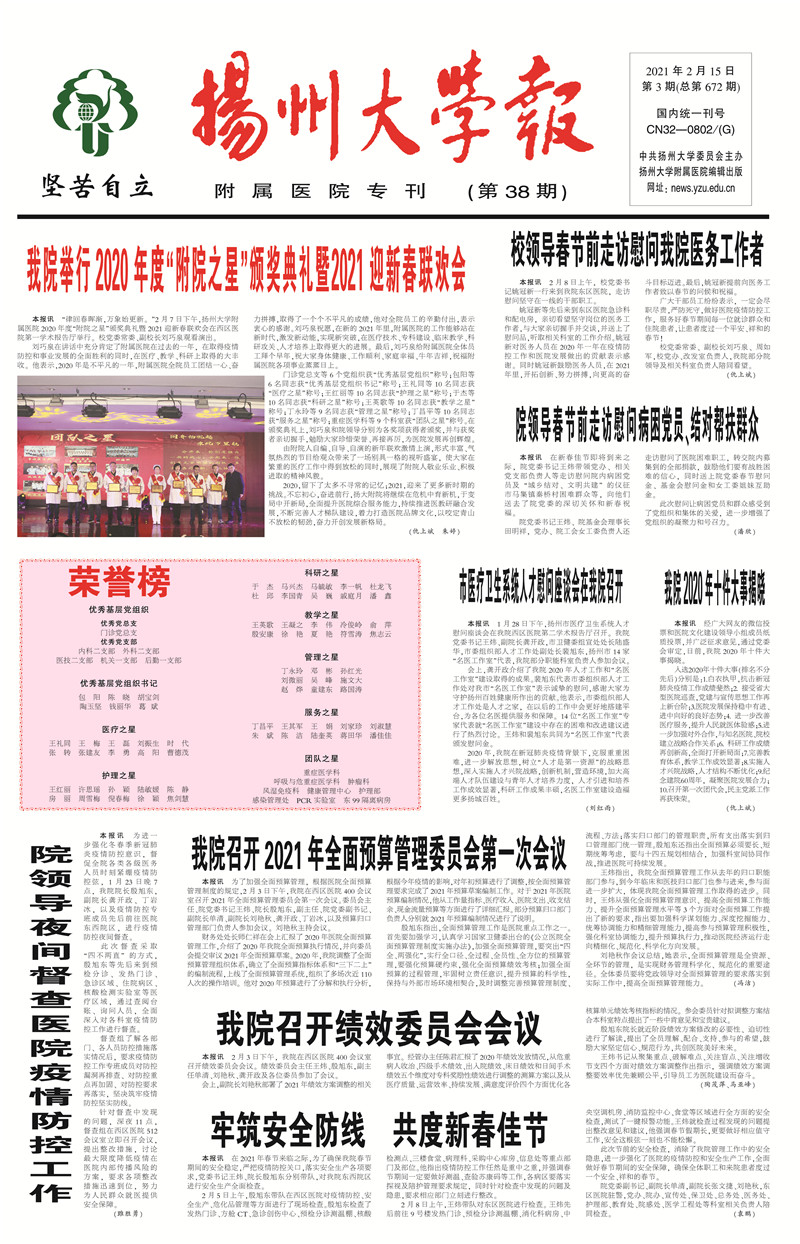 《扬州大学报•附属医院专刊》第38期(总第672期)(2021年2月15日第1版)