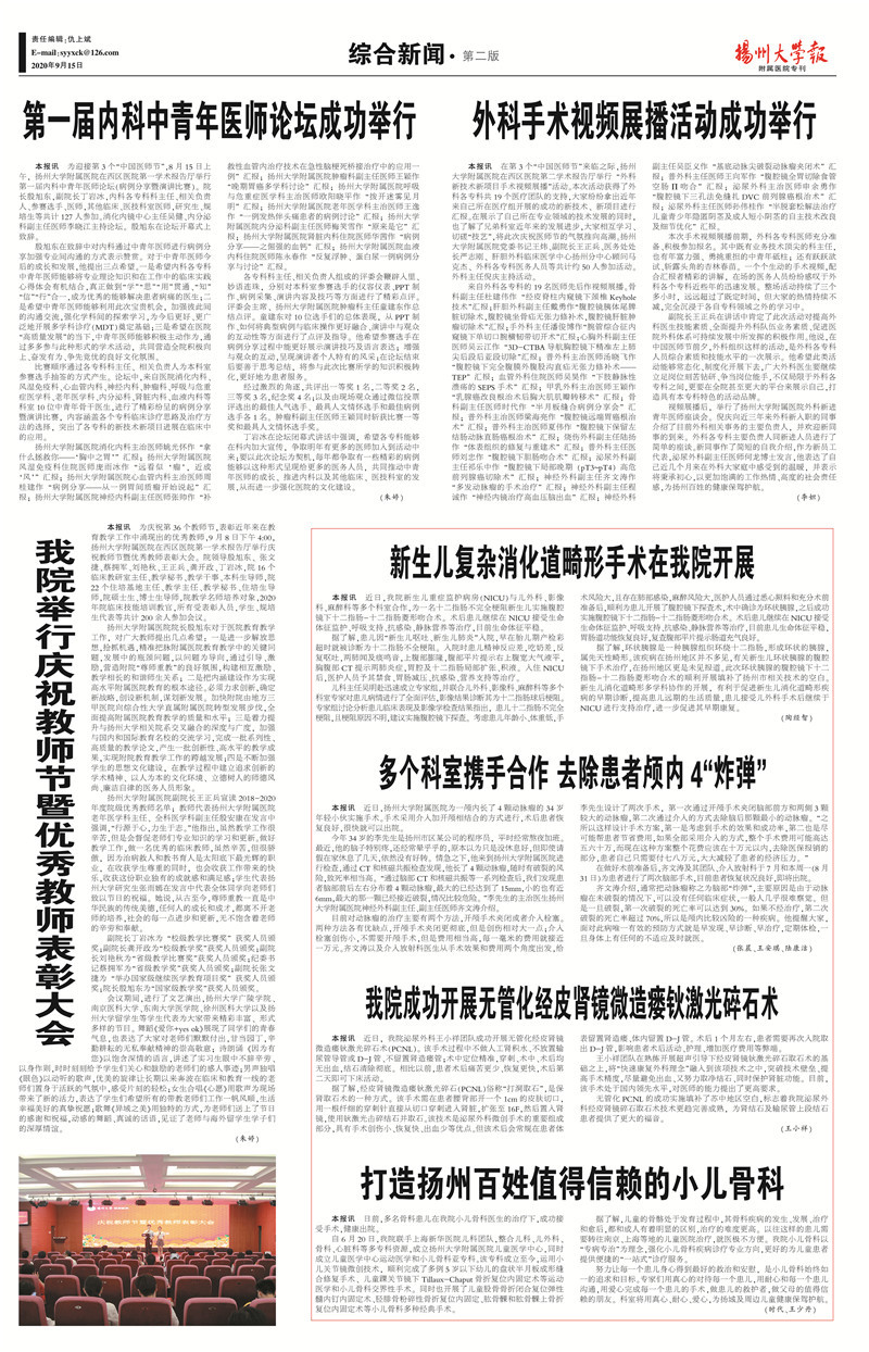 《扬州大学报•附属医院专刊》第33期(总第659期)(2020年9月15日第2版)