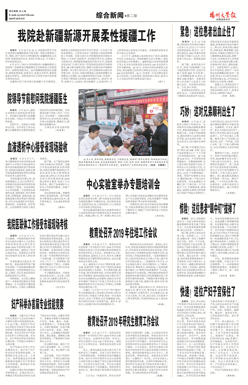 《扬州大学报•附属医院专刊》第22期(总第633期)(2019年10月15日第2版)