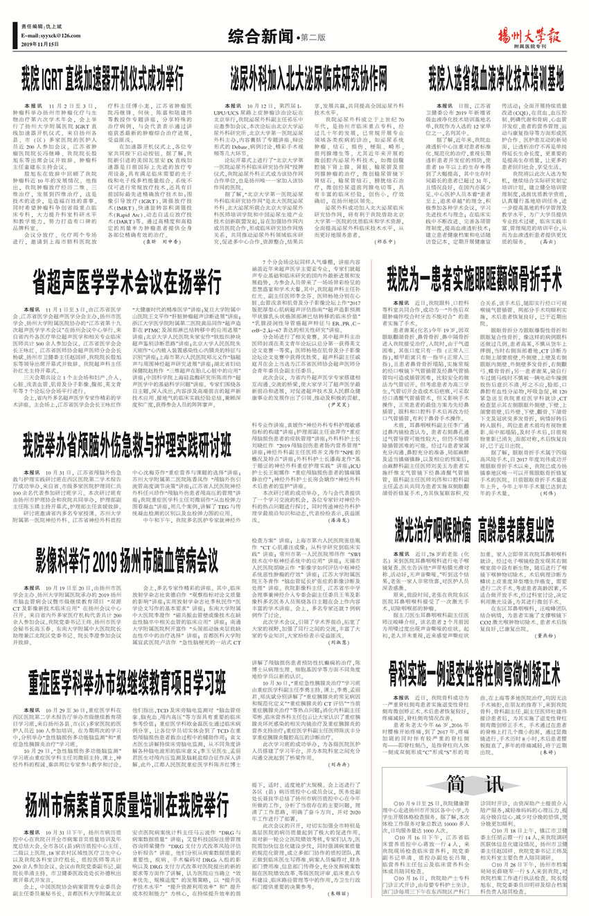 《扬州大学报•附属医院专刊》第23期(总第636期)(2019年11月15日第2版)