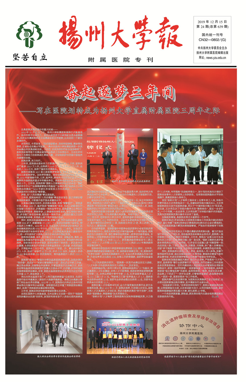 《扬州大学报•附属医院专刊》第24期(总第639期)(2019年12月15日第1版)