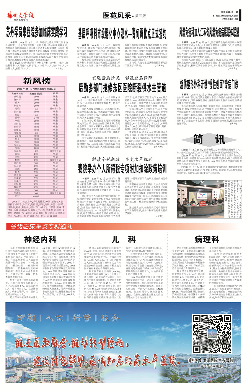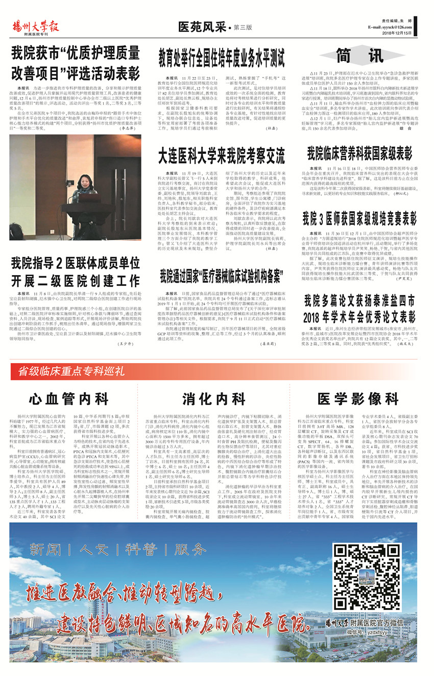 《扬州大学报•附属医院专刊》第12期(总第608期)(2018年12月15 日第4版)