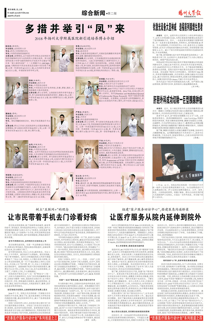 《扬州大学报•附属医院专刊》第13期(总第611期)(2019年1月15 日第2版)