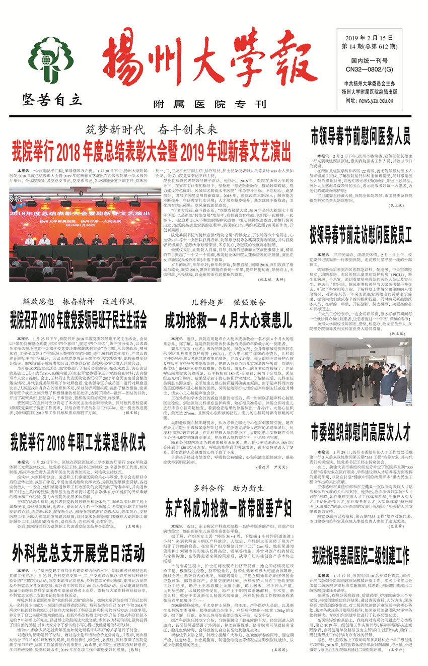 《扬州大学报•附属医院专刊》第14期(总第612期)(2019年2月15日第1版)