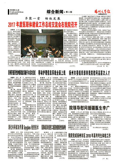 《扬州大学报•附属医院专刊》第2期(总第581期)(2018年2月25日第2版)