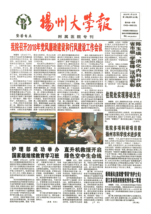 《扬州大学报•附属医院专刊》第3期(总第583期)(2018年3月25日第1版)